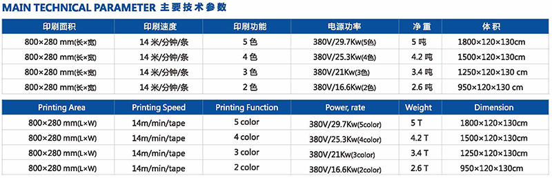 適用油墨:熱固油墨、水裝、發(fā)泡,可印刷布標(biāo)、繩帶、PVC。